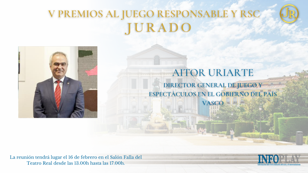 Hoy anunciamos a un nuevo miembro del Jurado de la V Edición de los Premios INFOPLAY al Juego Responsable y RSC. Se trata de Aitor Mikel Uriarte Unzalu, director general del Juego y Espectáculos del Gobierno del País Vasco.