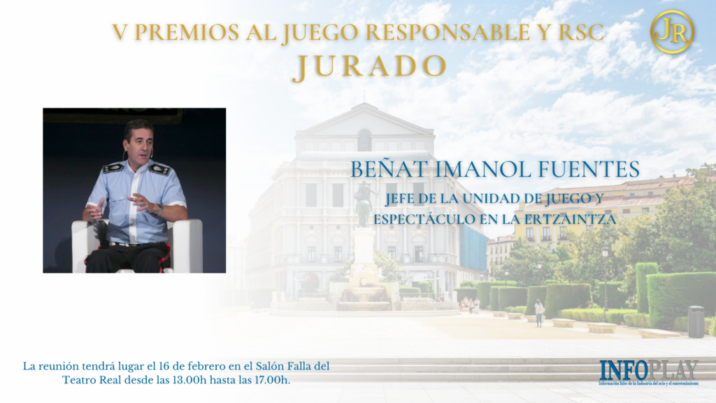 Anunciamos el que será otro de los miembros del JURADO de la V Edición de los PREMIOS INFOPLAY al Juego Responsable y RSC. Se trata de Beñat Imanol Fuentes, jefe de la Unidad de Juego y Espectáculos de la Ertazaintza, que junto con los demás miembros del jurado elegirá a los premiados.