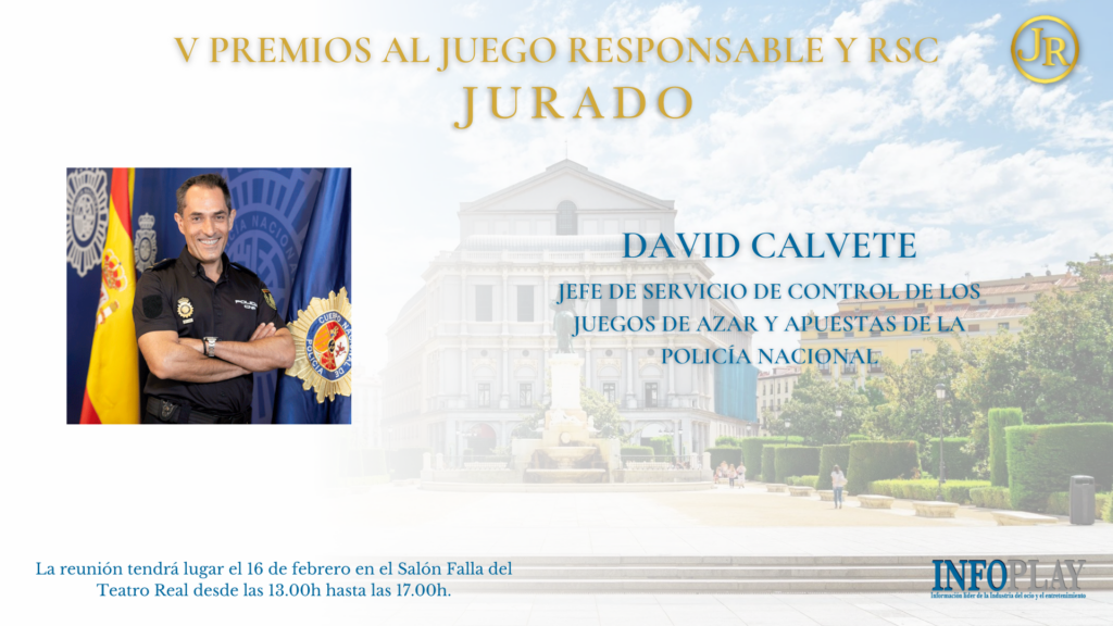 David Calvete, Jefe de Servicio de Control de los Juegos de Azar y Apuestas de la Policía Nacional, ha sido uno de nuestros más nobles y fuertes apoyos. Desde el primer momento implicado en nuestros trabajos en Juego Responsable, no podía faltar como miembro de nuestro PRESTIGIOSO JURADO.